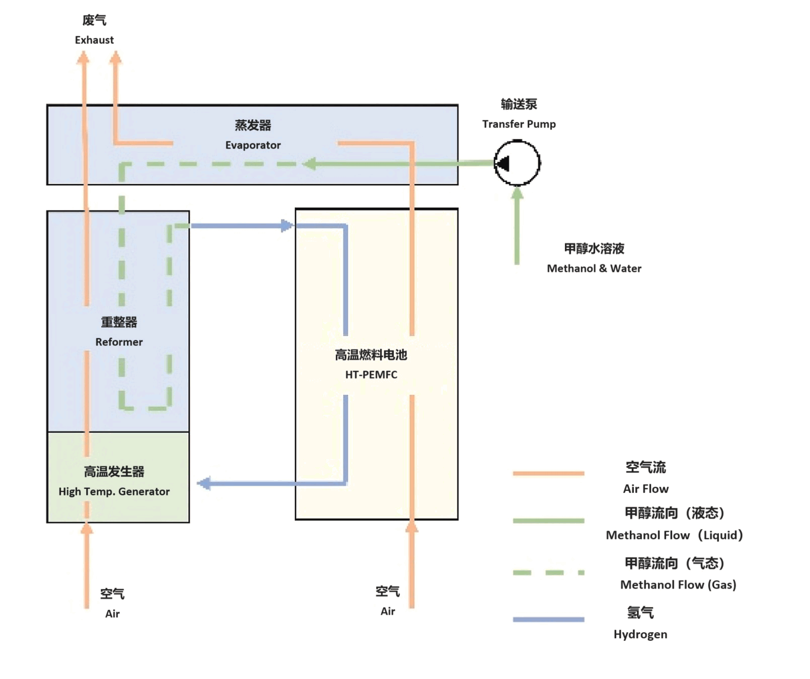 High-temperature methanol fuel cells mainly generate hydrogen through high-temperature reforming of methanol, and use hydrogen